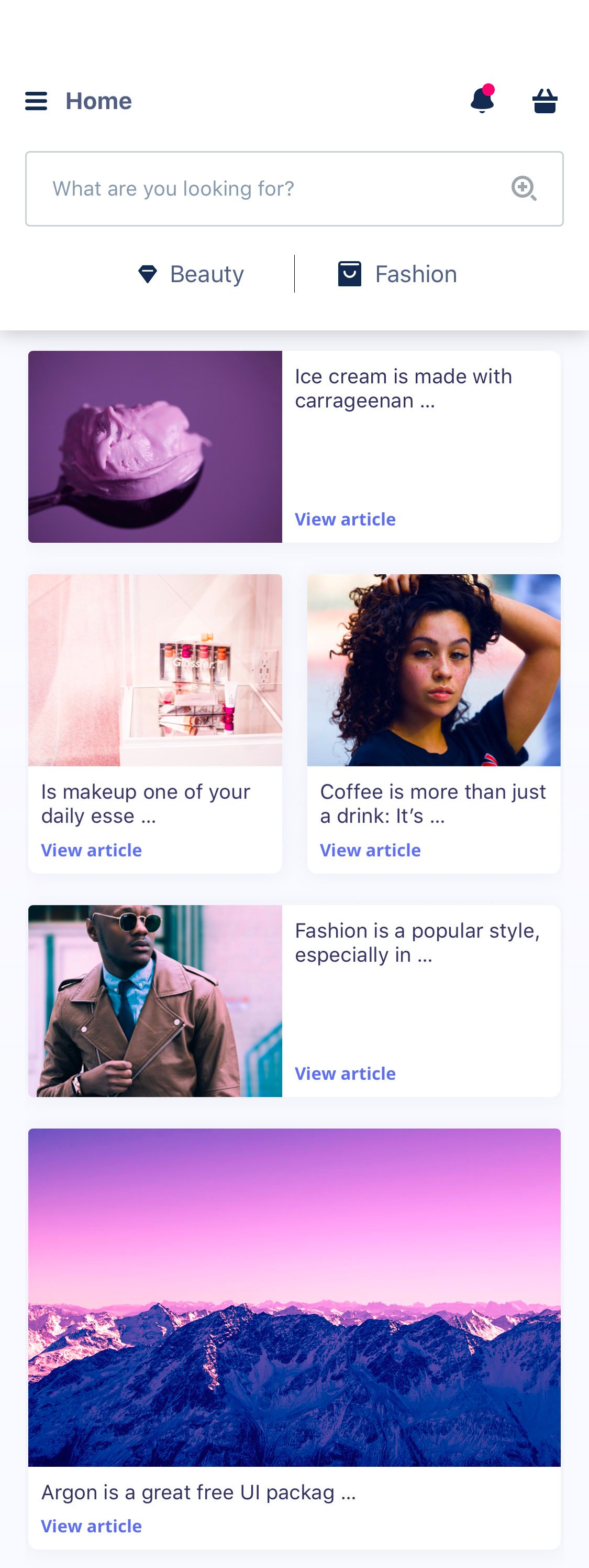 Argon Flutter has a fresh design inspired by Argon Design System.