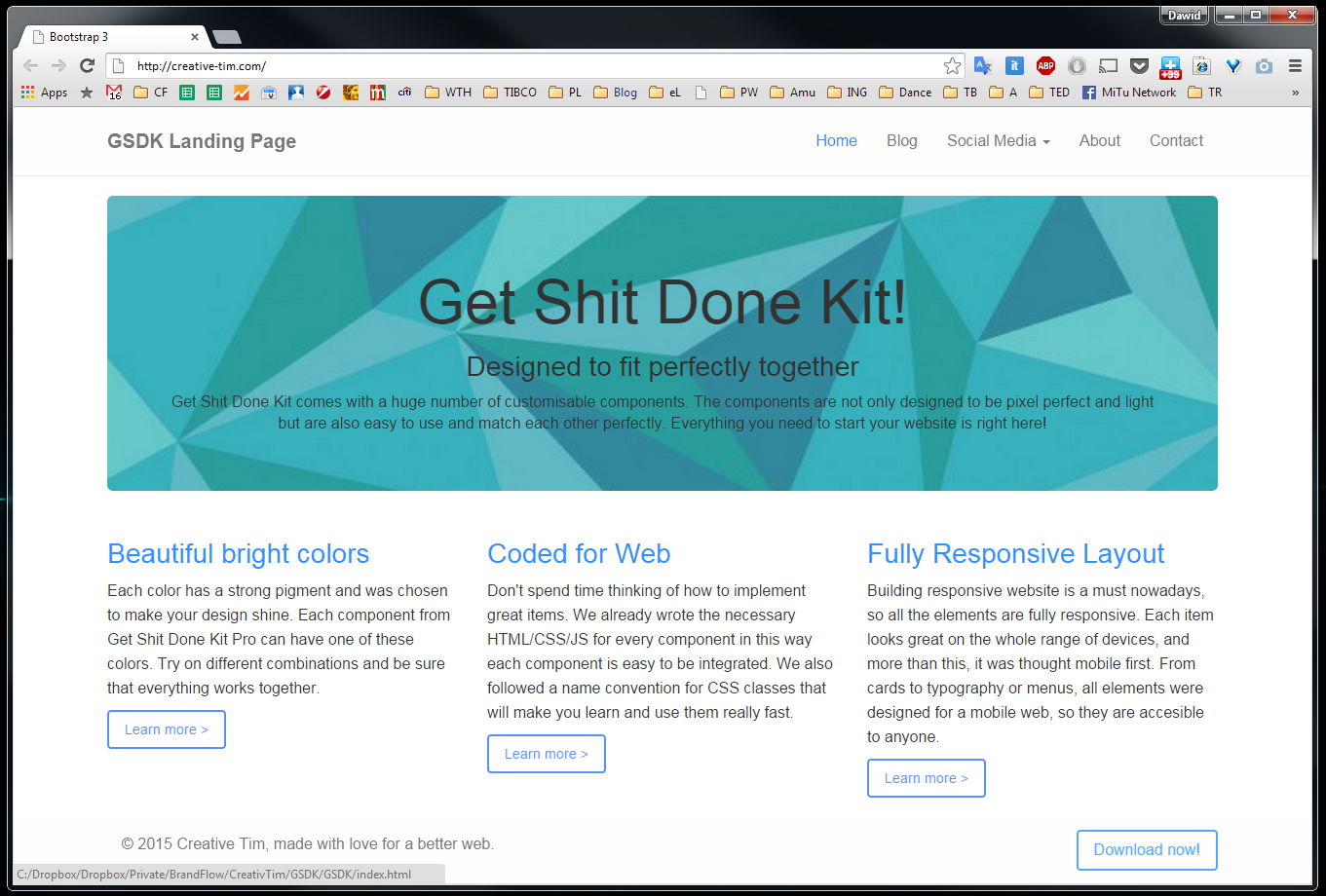 Today we will show you how to build a fully responsive webpage using our Get Shit Done Kit, which you can get for free here. Once you download and unzip it, please open the template.html file in your favorite HTML editor. If you don’t have any, check our list of best free text editors. Once you open it you will see the code below: