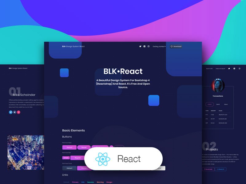 Start your development with a Black React Design System for Bootstrap 4 (Reacstrap). It is open source, developed using create-react-app, it is free and it features many components that can help you create amazing websites.